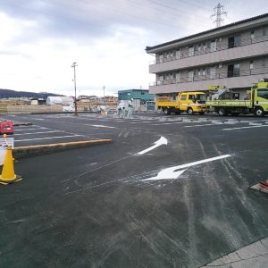 店舗駐車場・工場・その他 工場の従業員用駐車場 上田市古里 工場の従業員用駐車場 上田市古里 工場の従業員駐車場の舗装改修工事の様子です。 既設駐車場のアスファルト舗装を剥ぎ取り、不陸整正。 舗装は密粒13Fアスファルト合材を厚み4㎝で施工。 ラインと車止めブロックは、ライン専門業者に外注。 (元請・請負先:自社) ホームセンター駐車場 千曲市稲荷山 アパート駐車場 上田市諏訪形